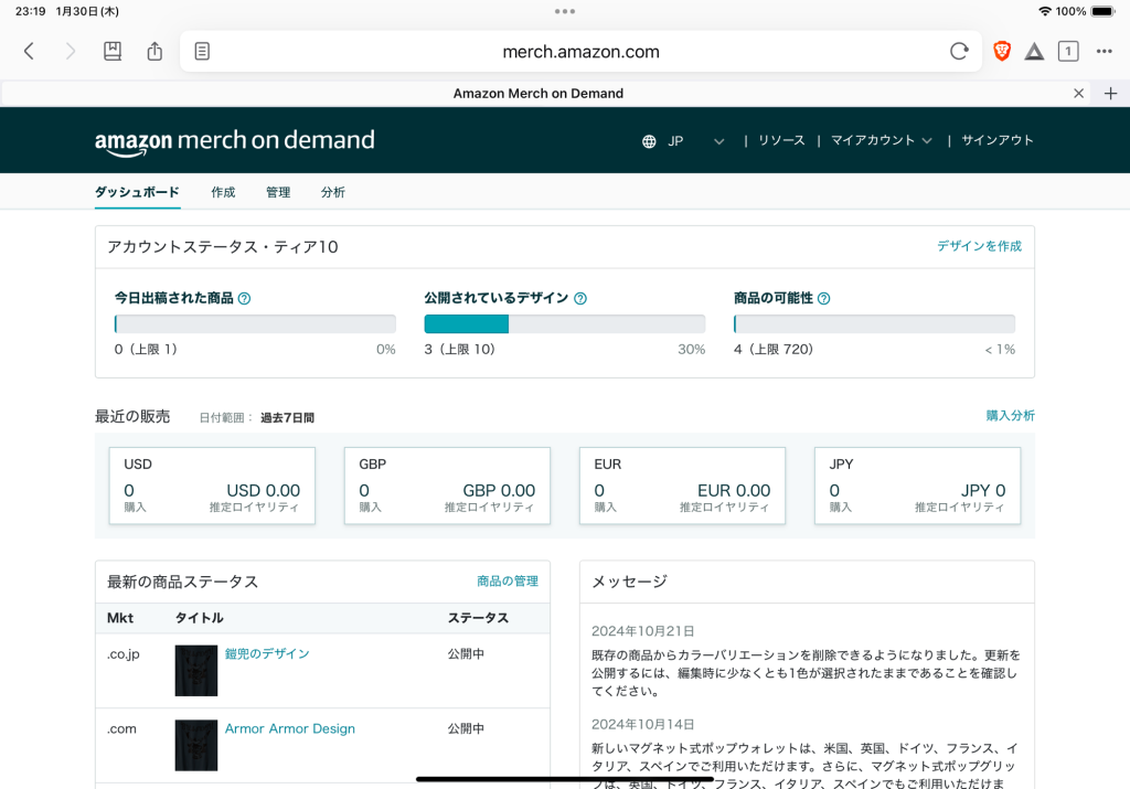 Amazonのサイトでデザイン登録してTシャツが販売出来るサービス。