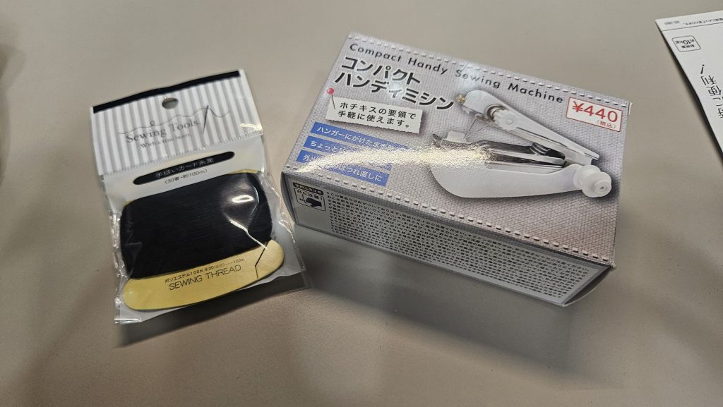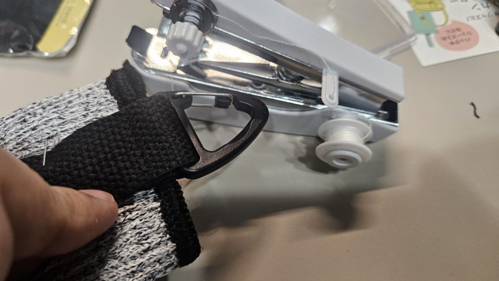 ハンディミシン、ホッチキスの様な仕組みで縫うのでグリップする側に幅が取れなかったり厚みがあると縫う事が出来ない。勉強になった。