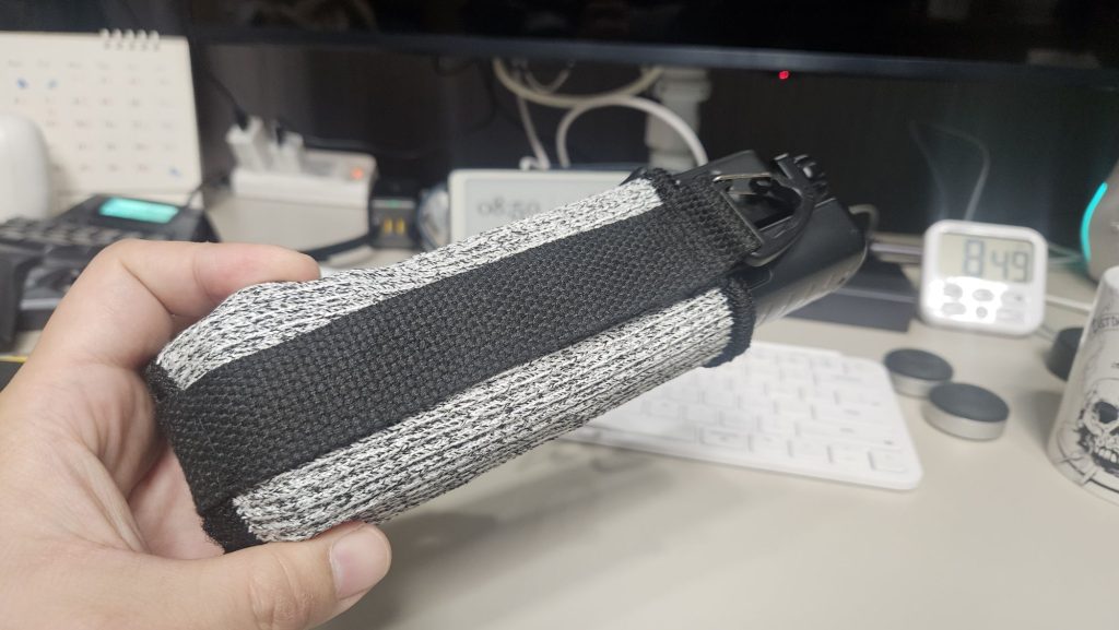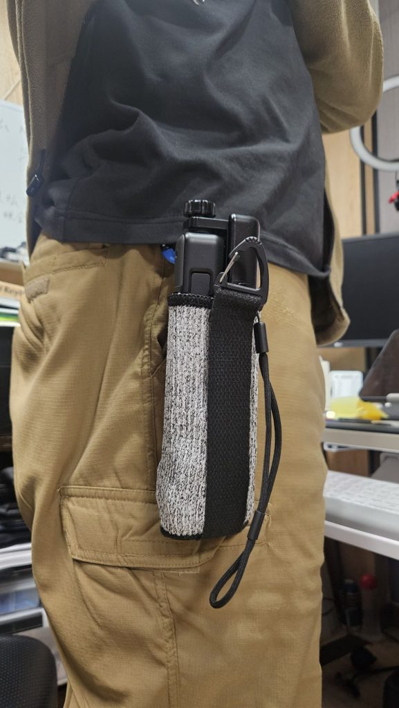 今回作ったのはダイソーの防刃リストバンドにキャンドゥの買い物袋用延長バンドなる物で作成した。特に作成しなくとも防刃リストバンドだけでもosmo pocket3のケースとしても有効に思う。